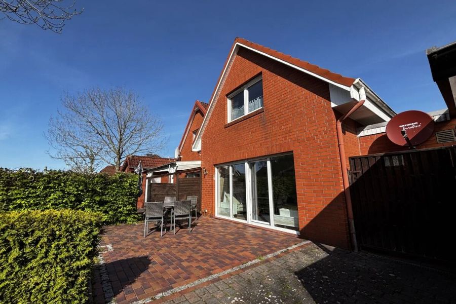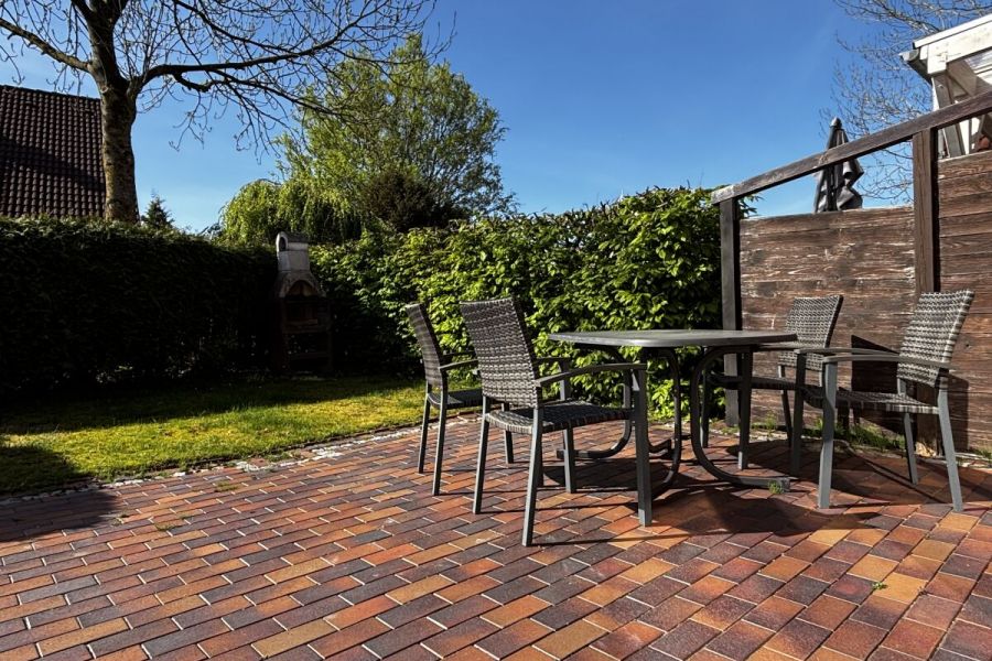 Im Außenbereich des Ferienhauses steht Ihnen ein Garten mit Terrasse, einem Außenschuppen für Fahrräder und ein Grillkamin zur Verfügung.